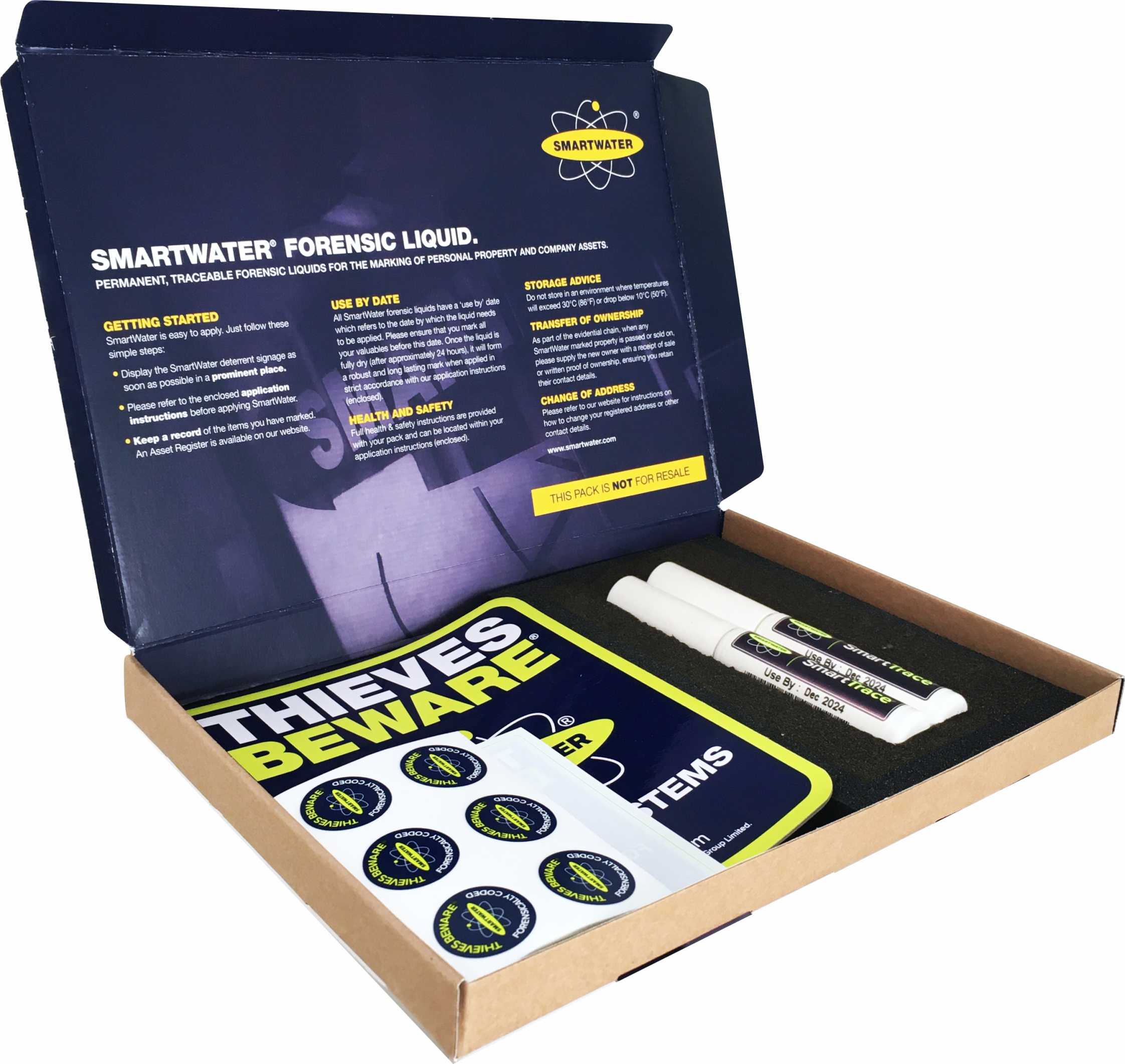 → 2 x SmartWater THIEVES BEWARE® Weather-resistant Deterrent Label (120mm x 140mm)